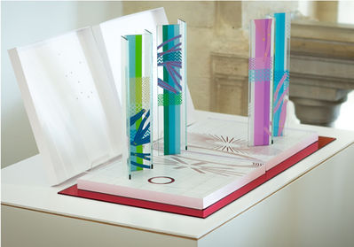 Dialogue avec Marcel Duchamp - Diverses confluences est un hommage à Marcel Duchamp, une maquette à l’échelle 1/7ème de trois paravents de verre contenus en deux boîtes exposés conjointement avec l’emblématique Boîte-en-valise.